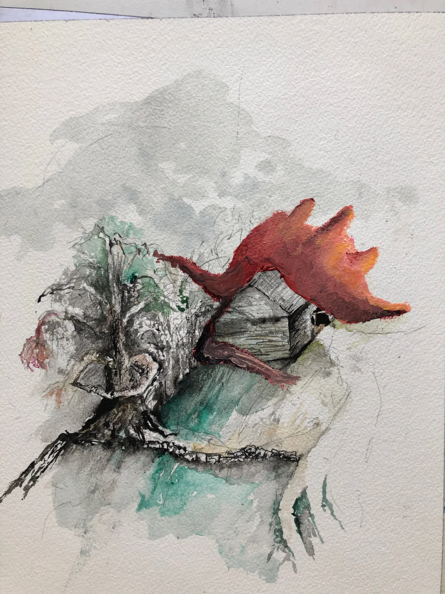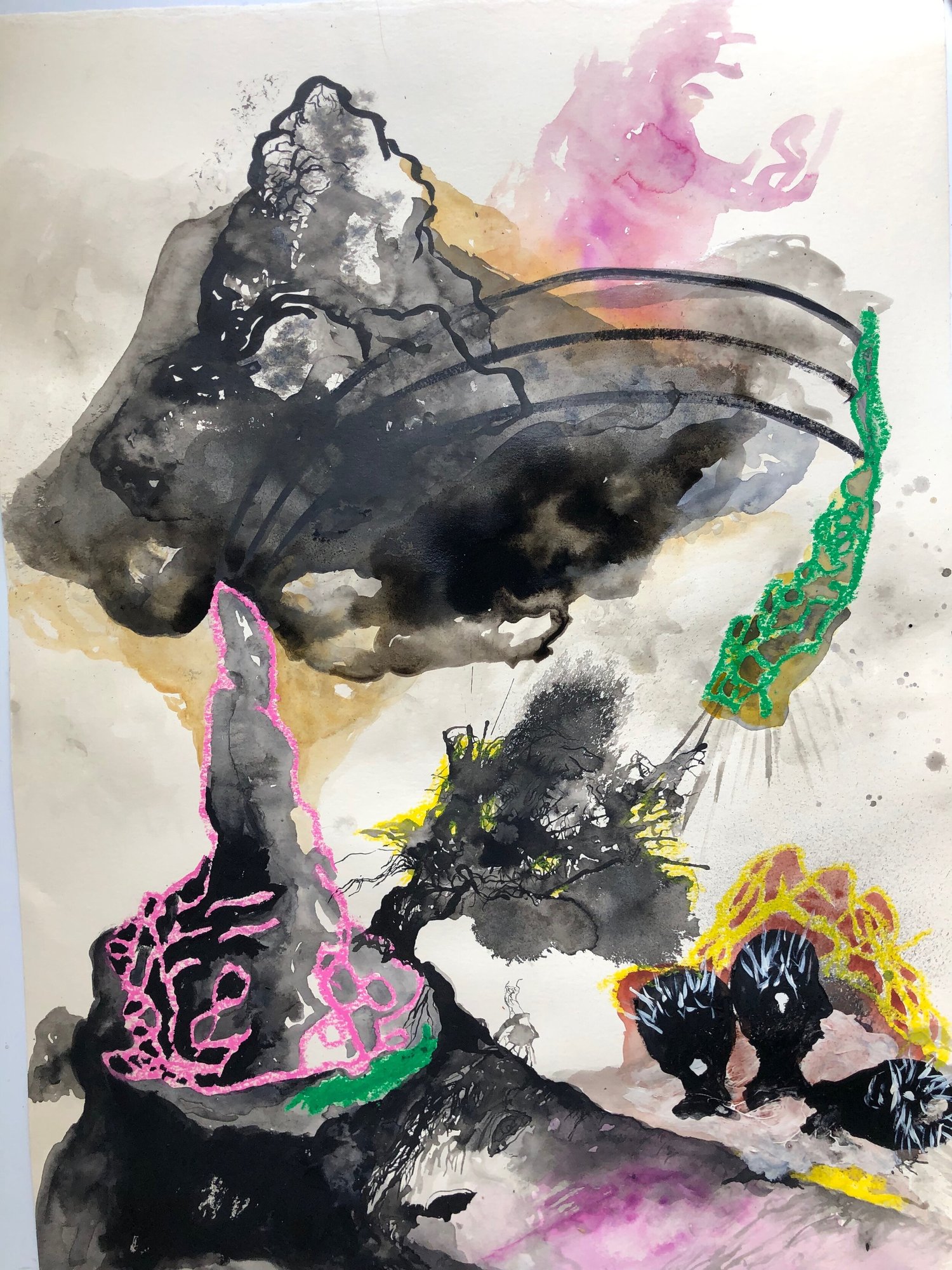 22 x 30" Spray paint, acrylic, watercolor, pen on paper